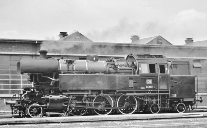 Bild oben: Die "Breitseite" der 66 002 1958 in Frankfurt-Griesheim. © Kurt Eckert / Slg. Eisenbahnstiftung